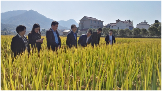 2017年10月31日,浙江省农业厅唐冬寿副厅长莅临建德市大同镇永盛村,考察杭州种业集团有限公司超级稻品种‘浙优18’超高产示范现场。