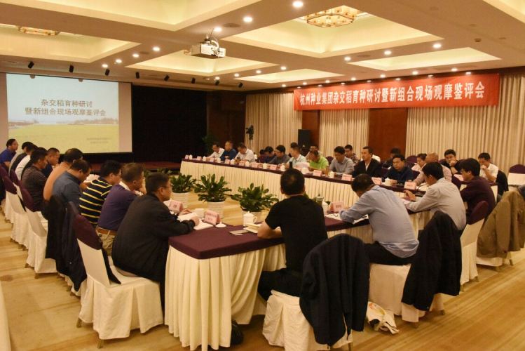 近年来,杭州种业集团大力实施水稻新品种选育工程,一批早熟、优质、抗倒、节肥及适应机械化、轻简化的籼粳杂交稻优势新组合脱颖而出。为加快集团籼粳杂交稻的试验、审定和应用进程,推动新时代种业新一轮绿色品种更新换代,杭州种业集团在杭州召开“杂交稻育种研讨暨新组合现场观摩鉴评会”。来自湖南、湖北、江西、江苏、福建、安徽、四川、重庆、贵州、河南、广西、广东等长江流域水稻主产省的30余家种业企业参会,中国水稻研究所胡培松研究员、第四届国家农作物品种审定委员会副主任委员陈金节推广研究员、浙江省种子管理总站施俊生高级农艺师与会研讨和现场鉴评。杭州市农业局邵京华总农艺师、科教处俞兴韩处长,杭州市科学技术委员会农社处沈勇处长,集团孙利祥董事长参加研讨。