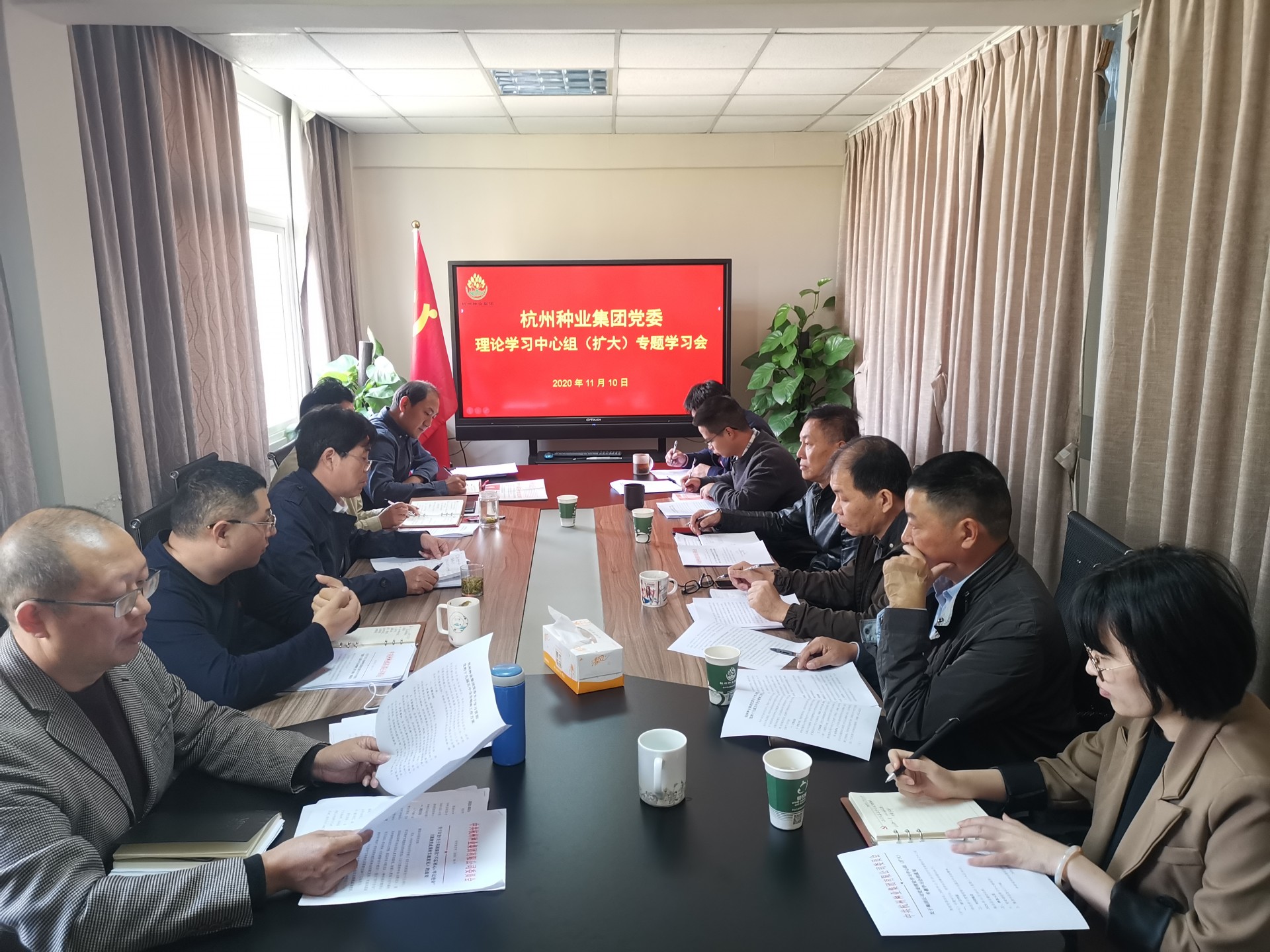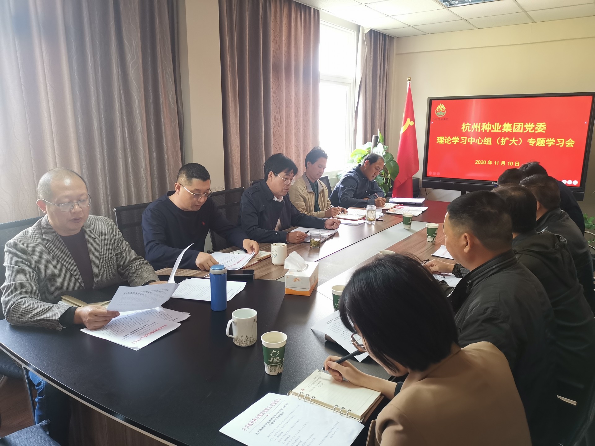 11月10日上午,杭州种业集团党委召开理论学习中心组(扩大)会议,专题传达学习习近平总书记在党的十九届五中全会上的重要讲话和全会精神,研究贯彻落实意见。党委书记、董事长孙利祥主持会议并讲话,理论学习中心组成员、集团全体中层干部及子公司负责人参加会议。