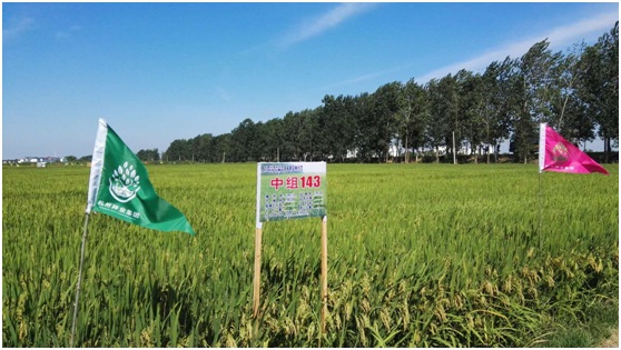 ‘中组143’(浙审稻2018003,新品种保护公告号:CNA019248E)系中国水稻研究所实施国家七大农作物育种专项项目《高产高效早籼稻新品种培育》项目的最新成果,2018年通过浙江省审定,杭州种业集团有限公司独占全国生产经营许可。该品种系早中熟常规早籼稻品种,2017年浙江省生产试验平均亩产570.6公斤,比对照‘中早39’增产3.4%;全生育期比对照‘中早39’短0.9天;具有田间生长整齐一致、株高适中、茎秆坚韧、穗大粒多、结实率高、后期青秆黄熟转色好、丰产性好等特点。