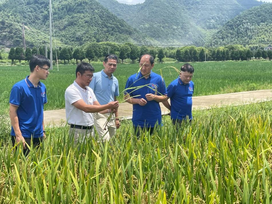 在分水建威家庭农场,利丰党支部的栽培、植保、土肥等党员技术人员仔细研判早稻和单季晚稻田间生长情况,结合今年第6号台风“烟花”的影响,提出:一要积极抢收已经成熟的早稻,减少台风暴雨带来的倒伏、穗芽损失;二是单季晚稻正处拔节孕穗期,要提前降低田间水位,保持排水沟渠畅通,减轻淹水造成的损失;三在台风暴雨过境后,单季晚稻田块增施拔节孕穗肥,同时加强白叶枯病、稻瘟病、纹枯病的防控,促进后期生长。