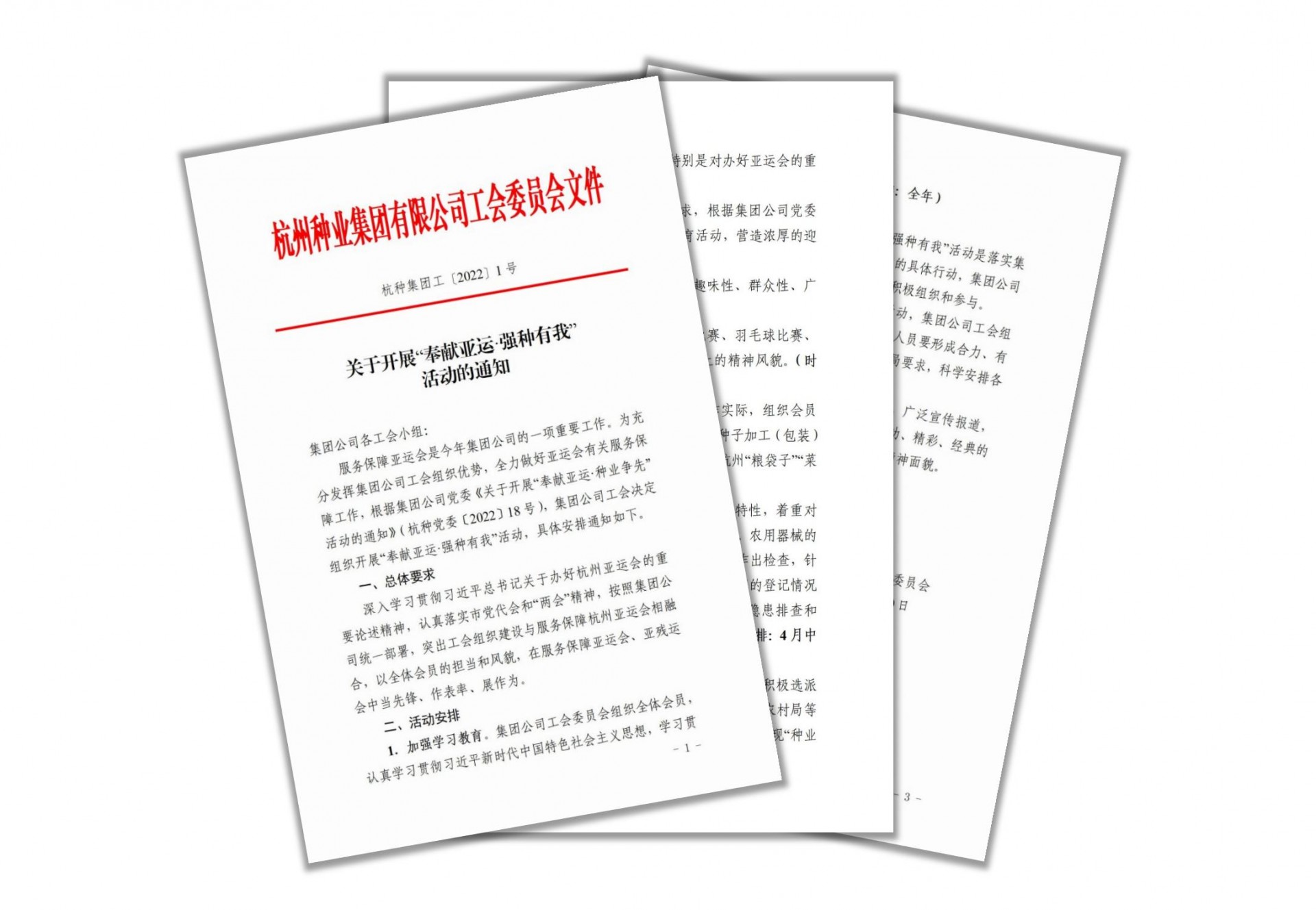 服务保障亚运会是今年杭州种业集团的一项重要工作。为充分发挥杭州种业集团工会组织优势,全力做好亚运会有关服务保障工作,根据上级工会有关要求,杭州种业集团工会组织开展“奉献亚运·强种有我”活动。