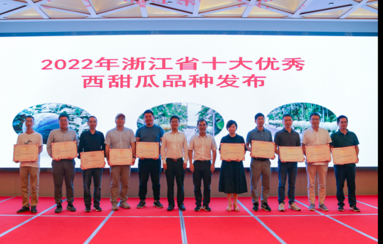 6月10日,在湖州市举办的浙江省瓜菜新品种现场观摩培训与西甜瓜品种品鉴会上又传来嘉讯:经专家评审团现场评审,综合了果实外观、剖面特征、风味口感、果实糖度等方面的各项指标,由杭州种业集团独占开发的‘浙甜105’和‘浙甜401’两个品种在国内外82个西甜瓜参选品种中突出重围,连读三年蝉联省级“十大”优秀品种。